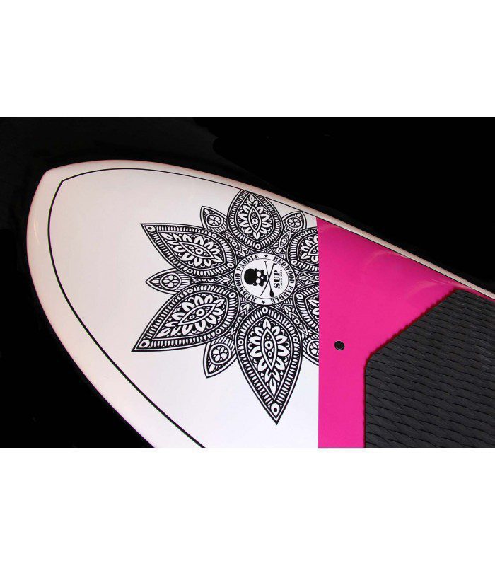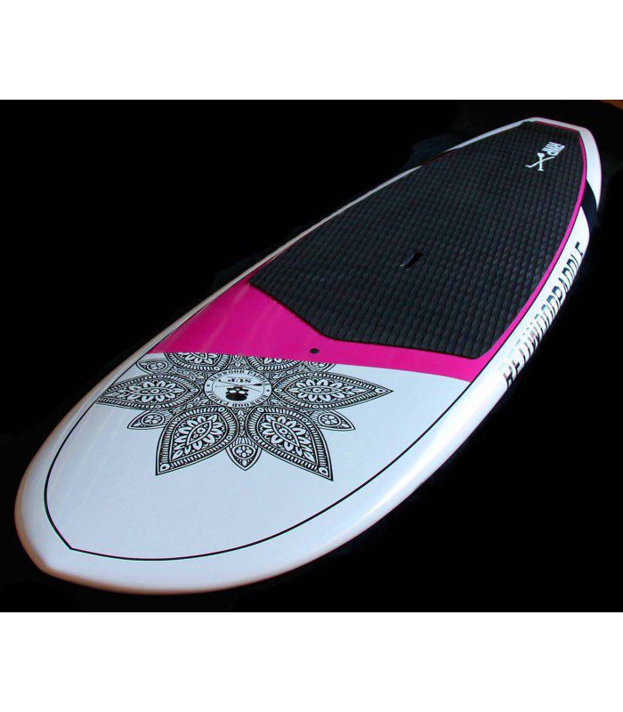 Funbox Lipstick version 2.0. Nuevo shape, nuevo grafismo y nueva construcción mas duradera y ligera. Tabla muy polivalente y estable para un aprendizaje fácil y rápido del stand up paddle para los de menos de 75 kg o para los de entre 75 y 89 kg que quieren surfear. surf y paseos estan al programa de este sup.