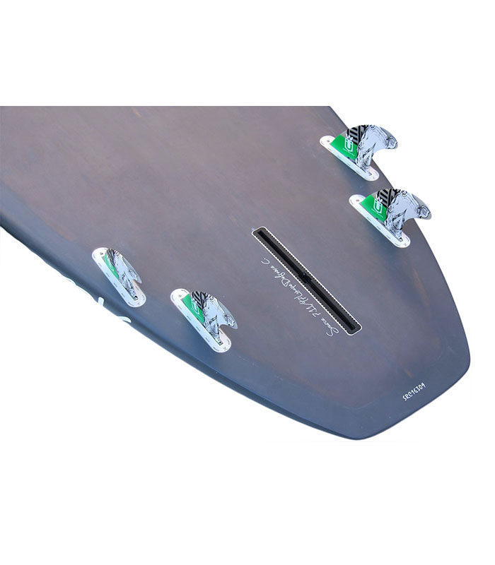 Sandwich Fibra vidrio tri-axe, búcleo EPS HD 15 kg/m3, doble sandwich bamboo y PVC en todo el deck, Sandwich bamboo en carena, multiples refuerzos en varias zonas como tail, punta y cantos. Ridigez Stinger PVC de punta a punta de la tabla para incrementar la rigidez (mas ligero que el habitual stinger de madera). Fiabilidad Refuerzos PVC 90 kg/m3 alrededor del mango, de las cajas de aletas para una solidez y fiabilidad máxima. Aletas Configuración Quad. Se entrega con un juego de 4 aletas en fibra de vidrio y honeycomb para optimizar el flex y reducir el peso. Pad Deck pad con 2/3 con kicktail. Nueva densidad de espuma mas confortable y nueva superficie antideslizante para un mejor agarre. Bamboo El uso del bamboo ha sido también determinante para incrementar la rigidez, la resistencia a los golpes y por su puesto para la estética de la tabla dándole un toque natural y puro. Es guapísima!