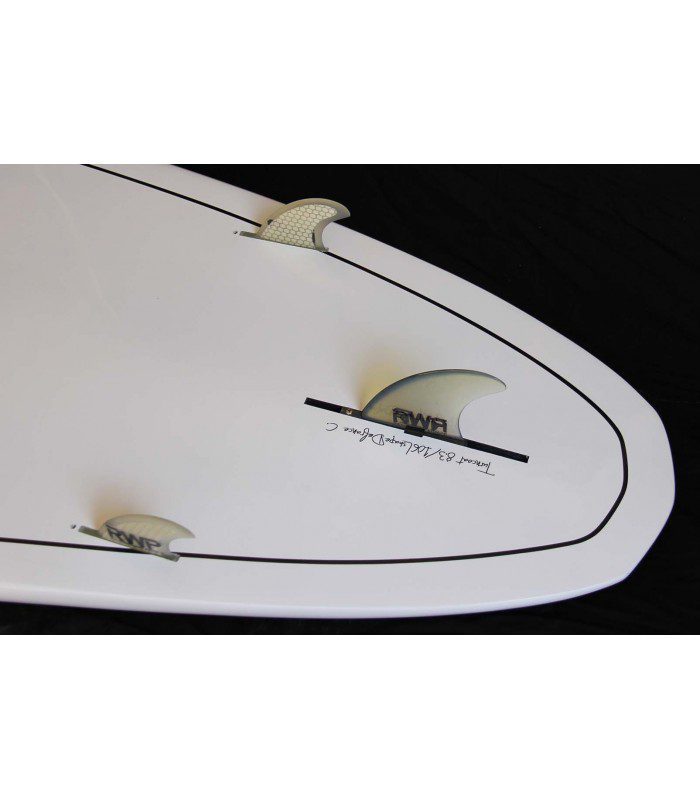 Cada tabla se entrega con Deck Pad, Aleta central Fiber glass en US Box y dos aletas latarales fiber glass y honecomb para optimizar flex y peso (sistema Futurfins).