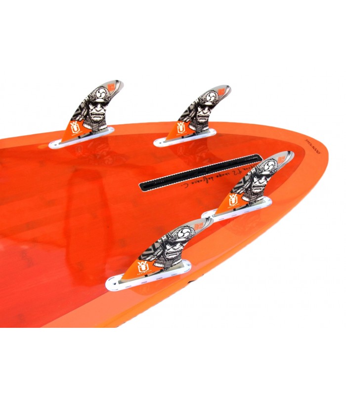 Sandwich Fibra vidrio tri-axe, búcleo EPS HD 15 kg/m3, doble sandwich bamboo y PVC en todo el deck, Sandwich bamboo en carena, multiples refuerzos en varias zonas como tail, punta y cantos. Ridigez Stinger PVC de punta a punta de la tabla para incrementar la rigidez (mas ligero que el habitual stinger de madera). Fiabilidad Refuerzos PVC 90 kg/m3 alrededor del mango, de las cajas de aletas para una solidez y fiabilidad máxima. Aletas Central US box en fibra de vidrio y 2 aletas Future Fins en los laterales con fibra de vidrio y honeycomb para optimizar el flex y reducir el peso. Pad Deck pad con 2/3 con kicktail. Nueva densidad de espuma mas confortable y nueva superficie antideslizante para un mejor agarre. Bamboo El uso del bamboo ha sido también determinante para incrementar la rigidez, la resistencia a los golpes y por su puesto para la estética de la tabla dándole un toque natural y puro. Es guapísima!