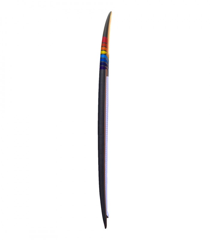 Tecnología 100% carbono, búcleo EPS HD 15 kg/m3, fibra vidrio tri-axe, sandwich PVC en todo el deck, refuerzos en varias zonas como tail, punta y cantos. Rigidez Stinger PVC de punta a punta de la tabla para incrementar la rigidez (mas ligero que el habitual stinger de madera). Fiabilidad Refuerzos PVC 90 kg/m3 alrededor del mango, de las cajas de aletas para una solidez y fiabilidad máxima. Aletas Central US box en fibra de vidrio y 2 aletas Future Fins en los laterales con fibra de vidrio y honeycomb para optimizar el flex y reducir el peso. Pad Deck pad con 2/3 con kicktail. Nueva densidad de espuma mas confortable y nueva superficie antideslizante para un mejor agarre.