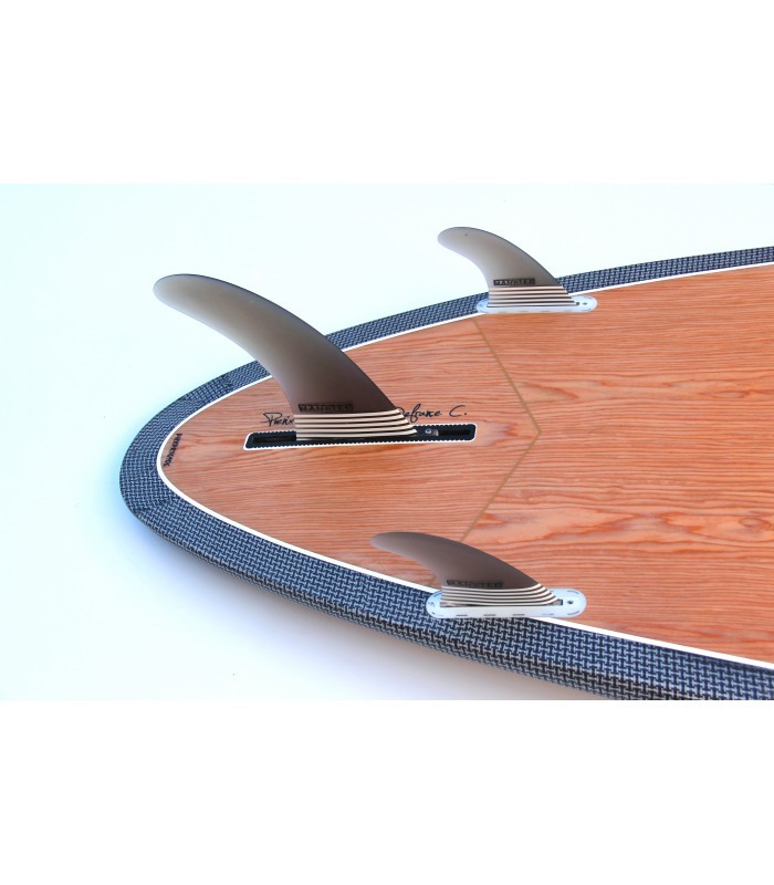 Mismo shape que la Phénix Pro 9′6 pero con tecnologia doble sandwich wood carbono/innegra y pvc. Acabado madera natural. Un look original para un shape longboard style de lo mas puro.
