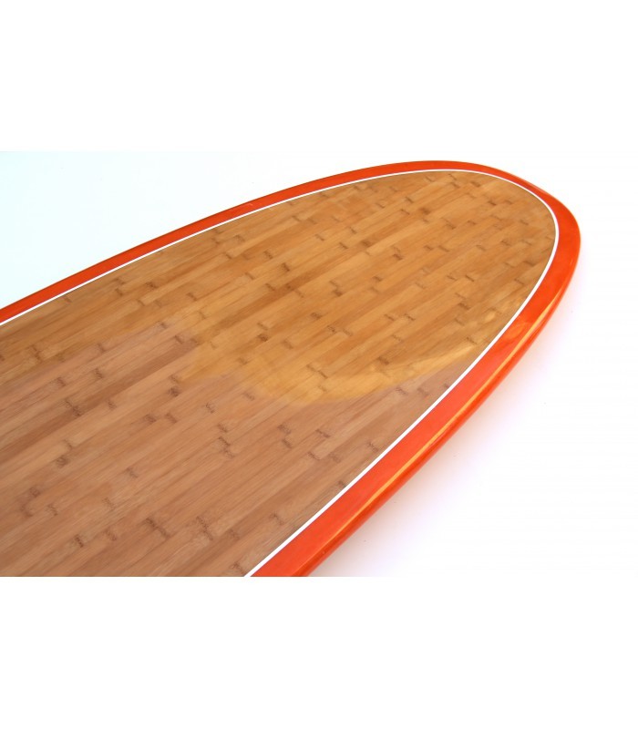 Sandwich Fibra vidrio tri-axe, búcleo EPS HD 15 kg/m3, doble sandwich bamboo y PVC en todo el deck, Sandwich bamboo en carena, multiples refuerzos en varias zonas como tail, punta y cantos. Ridigez Stinger PVC de punta a punta de la tabla para incrementar la rigidez (mas ligero que el habitual stinger de madera). Fiabilidad Refuerzos PVC 90 kg/m3 alrededor del mango, de las cajas de aletas para una solidez y fiabilidad máxima. Aletas Central US box en fibra de vidrio y 4 aletas Future Fins en los laterales con fibra de vidrio y honeycomb para optimizar el flex y reducir el peso. Pad Se entrega sin deck pad. Puro longboard style. Bamboo El uso del bamboo ha sido también determinante para incrementar la rigidez, la resistencia a los golpes y por su puesto para la estética de la tabla dándole un toque natural y puro. Es guapísima!