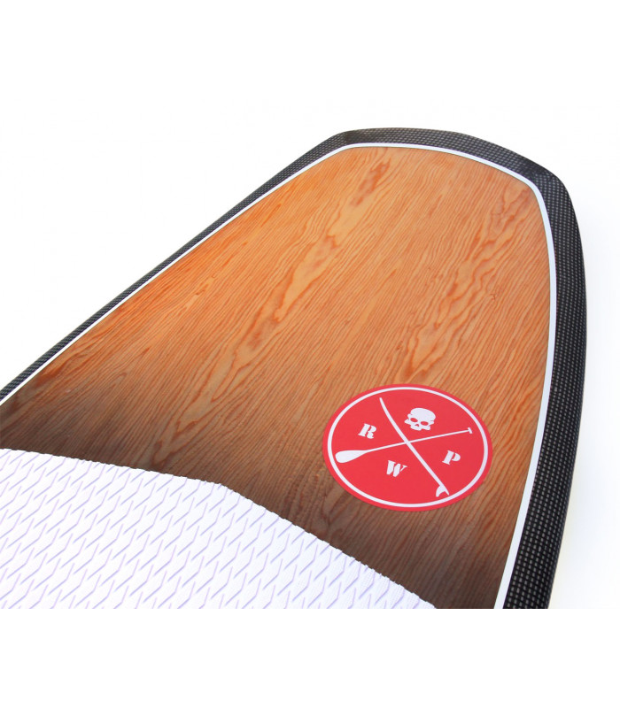 Tecnología 100% carbono innegra, núcleo EPS HD 15 kg/m3, fibra vidrio tri-axe, doble sandwich Madera Natural/PVC en todo el deck, refuerzos en varias zonas como tail, punta y cantos. Ridigez Stinger PVC de punta a punta de la tabla para incrementar la rigidez (mas ligero que el habitual stinger de madera). Fiabilidad Refuerzos PVC 90 kg/m3 alrededor del mango, de las cajas de aletas para una solidez y fiabilidad máxima. Aletas 4 aletas Future Fins en fibra de vidrio y honeycomb para optimizar el flex y reducir el peso.se puede montar en quad o trifins. Pad Deck pad con 2/3 con kicktail. Nueva densidad de espuma mas confortable y nueva superficie antideslizante para un mejor agarre. Madera Natural El uso del madera natural ha sido también determinante para incrementar la rigidez, la resistencia a los golpes y por su puesto para la estética de la tabla dándole un toque natural y puro. Es guapísima!