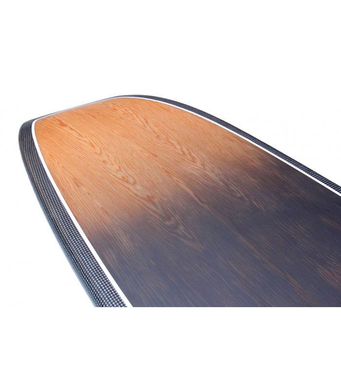 Tecnología 100% carbono innegra, núcleo EPS HD 15 kg/m3, fibra vidrio tri-axe, doble sandwich Madera Natural/PVC en todo el deck, refuerzos en varias zonas como tail, punta y cantos. Ridigez Stinger PVC de punta a punta de la tabla para incrementar la rigidez (mas ligero que el habitual stinger de madera). Fiabilidad Refuerzos PVC 90 kg/m3 alrededor del mango, de las cajas de aletas para una solidez y fiabilidad máxima. Aletas 4 aletas Future Fins en fibra de vidrio y honeycomb para optimizar el flex y reducir el peso.se puede montar en quad o trifins. Pad Deck pad con 2/3 con kicktail. Nueva densidad de espuma mas confortable y nueva superficie antideslizante para un mejor agarre. Madera Natural El uso del madera natural ha sido también determinante para incrementar la rigidez, la resistencia a los golpes y por su puesto para la estética de la tabla dándole un toque natural y puro. Es guapísima!