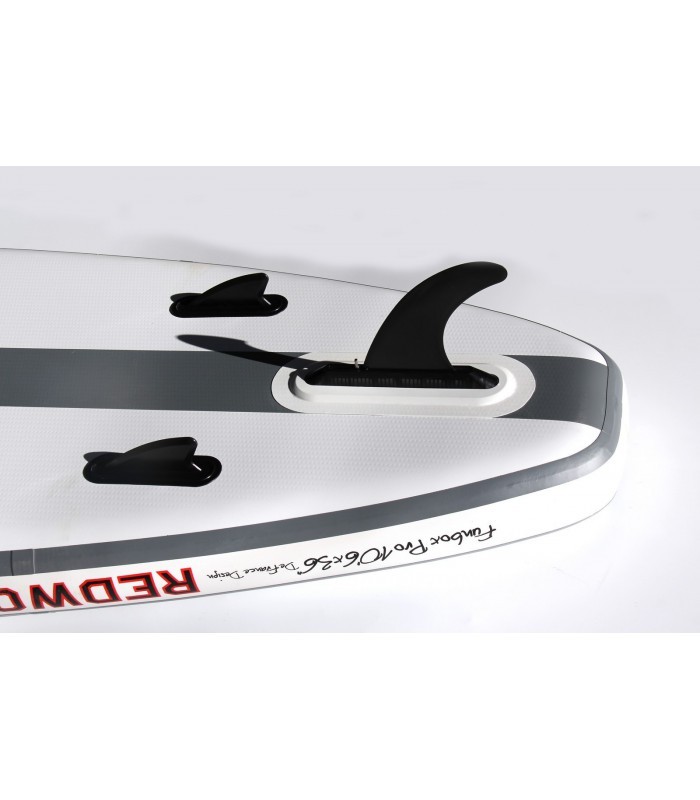 El uso de estos nuevoas materiales ha sido determinante para obtener la mejor relación ligereza/rigidez. Se trata de una construcción alta gama cuya rigidez y ligereza se nota enseguida en el agua pero también para transportar la tabla hasta la orilla. Una construcción que pueden encontrar en otras marcas pero por unos precios que no tienen nada que ver con los nuestros y pueden, a veces, superarlos de mas del doble.Ridigez Las dos capas de PVC y la construcción garantizan una tabla rígida y la restitución perfecta del rocker y shape de la tabla. Se pueden hinchar a mas de 20 psi. Fiabilidad Un cuidado especial en el momento del sellado de los materiales y un control de calidad rigoroso aseguran la fiabilidad de nuestras tablas y su durabilidad en el tiempo. Aletas Aleta central amovible con sistema internacional US Box y dos aletas lateras pegadas para incrementar el control y la estabilidad de la tabla (salvo el los modelos de race : solo una aleta central - Big Dady 3 aletas - Gama Starter una sola Aleta central con sistema slide). Pad Deck pad con 2/3. Nueva densidad de espuma mas confortable y nueva antideslizante para un mejor agarre. (Full deck pad en la Big Daddy) Mochila Mochila con ruedas para guardar la tabla con sus accesorios. Se puede llevarla en la espalda o colgada del hombro. El nuevo sistema de apertura con cremallera permite entrar la tabla y los accesorios con mucha facilidad. (Salvo gama Starter Mochila Tubo) Hinchador Destacar el nuevo inflador HP con manómetro de presión incorporado, doble sistema de inflado permitiendo inflar la tabla con doble velocidad y ponerle mas presión de aire. Accesorios Soporte elástico en la punta para sujetar por ejemplo una bolsa, una botella de agua, mascarillas de buceo.