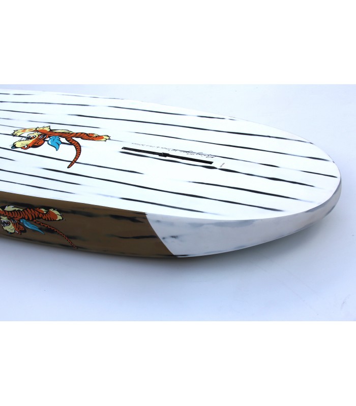 Sandwich 100% carbono, núcleo EPS HD 15 kg/m3, fibra vidrio tri-axe, sandwich PVC en la zona de pies, refuerzos en varias zonas como tail, punta. Ridigez Stinger PVC de punta a punta de la tabla para incrementar la rigidez (mas ligero que el habitual stinger de madera). Fiabilidad Refuerzos PVC 90 kg/m3 alrededor del mango, de las cajas de aletas para una solidez y fiabilidad máxima. Aletas Sistema Us Box Internacional. Se entrega sin Aleta. Pad Deck pad con 2/3 con kicktail. Nueva densidad de espuma mas confortable y nueva superficie antideslizante para un mejor agarre.