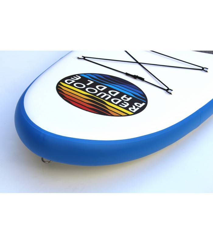 El uso de estos nuevoas materiales ha sido determinante para obtener la mejor relación ligereza/rigidez. Se trata de una construcción alta gama cuya rigidez y ligereza se nota enseguida en el agua pero también para transportar la tabla hasta la orilla. Una construcción que pueden encontrar en otras marcas pero por unos precios que no tienen nada que ver con los nuestros y pueden, a veces, superarlos de mas del doble.Ridigez Las dos capas de PVC y la construcción garantizan una tabla rígida y la restitución perfecta del rocker y shape de la tabla. Se pueden hinchar a mas de 20 psi. Fiabilidad Un cuidado especial en el momento del sellado de los materiales y un control de calidad rigoroso aseguran la fiabilidad de nuestras tablas y su durabilidad en el tiempo. Aletas Aleta central amovible con sistema internacional US Box y dos aletas lateras pegadas para incrementar el control y la estabilidad de la tabla (salvo el los modelos de race : solo una aleta central - Big Dady 3 aletas - Gama Starter una sola Aleta central con sistema slide). Pad Deck pad con 2/3. Nueva densidad de espuma mas confortable y nueva antideslizante para un mejor agarre. (Full deck pad en la Big Daddy) Mochila Mochila con ruedas para guardar la tabla con sus accesorios. Se puede llevarla en la espalda o colgada del hombro. El nuevo sistema de apertura con cremallera permite entrar la tabla y los accesorios con mucha facilidad. (Salvo gama Starter Mochila Tubo) Hinchador Destacar el nuevo inflador HP con manómetro de presión incorporado, doble sistema de inflado permitiendo inflar la tabla con doble velocidad y ponerle mas presión de aire. Accesorios Soporte elástico en la punta para sujetar por ejemplo una bolsa, una botella de agua, mascarillas de buceo.