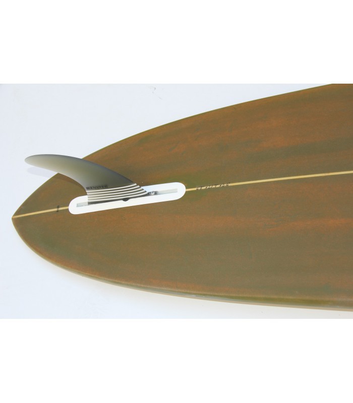 Construcción Núcleo EPS HD 30 kg/m3. Fibra vidrio resina epoxy. Puente : 3 capas de 6 onzas + una capar de 6 onzas en la zona de los pies. Carena : 2 capas de 6 onzas. Rídigez Stinger madera de 5 mm de punta a punta de la tabla para incrementar la rigidez y solidez Fiabilidad Refuerzos PVC 90 kg/m3 alrededor de las cajas de aletas para una solidez y fiabilidad máxima Aletas Una alleta central con sistema internacional US box. Fabricada en fibra de vidrio con nido abeja para optimzar el flex y peso. Acabado Resina tintada