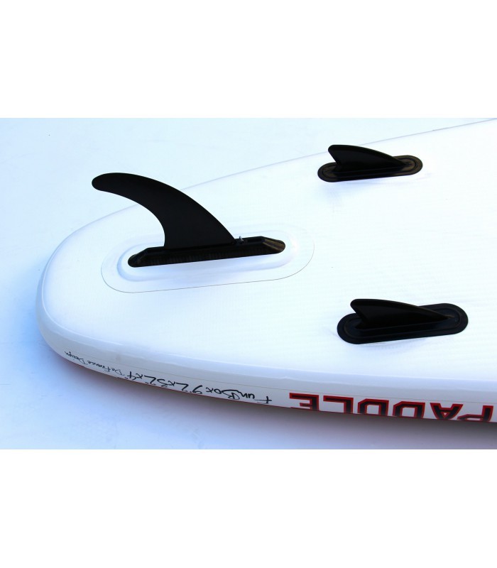 El uso de estos nuevoas materiales ha sido determinante para obtener la mejor relación ligereza/rigidez. Se trata de una construcción alta gama cuya rigidez y ligereza se nota enseguida en el agua pero también para transportar la tabla hasta la orilla. Una construcción que pueden encontrar en otras marcas pero por unos precios que no tienen nada que ver con los nuestros y pueden, a veces, superarlos de mas del doble.Ridigez Las dos capas de PVC y la construcción garantizan una tabla rígida y la restitución perfecta del rocker y shape de la tabla. Se pueden hinchar a mas de 20 psi. Fiabilidad Un cuidado especial en el momento del sellado de los materiales y un control de calidad rigoroso aseguran la fiabilidad de nuestras tablas y su durabilidad en el tiempo. Aletas Aleta central amovible con sistema internacional US Box y dos aletas lateras pegadas para incrementar el control y la estabilidad de la tabla (salvo el los modelos de race : solo una aleta central - Big Dady 3 aletas - Gama Starter una sola Aleta central con sistema slide). Pad Deck pad con 2/3. Nueva densidad de espuma mas confortable y nueva antideslizante para un mejor agarre. (Full deck pad en la Big Daddy) Mochila Mochila con ruedas para guardar la tabla con sus accesorios. Se puede llevarla en la espalda o colgada del hombro. El nuevo sistema de apertura con cremallera permite entrar la tabla y los accesorios con mucha facilidad. (Salvo gama Starter Mochila Tubo) Hinchador Destacar el nuevo inflador HP con manómetro de presión incorporado, doble sistema de inflado permitiendo inflar la tabla con doble velocidad y ponerle mas presión de aire. Accesorios Soporte elástico en la punta para sujetar por ejemplo una bolsa, una botella de agua, mascarillas de buceo.