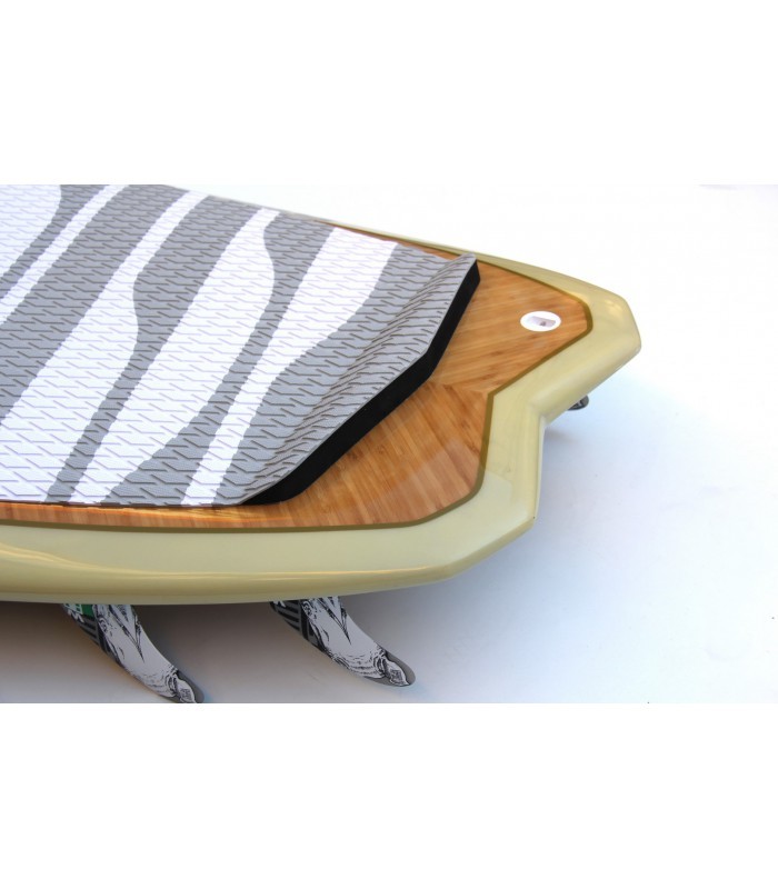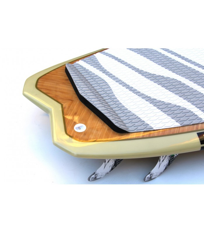Tecnología Núcleo EPS HD 15 kg/m3, fibra vidrio tri-axe, doble sandwich Madera Natural/PVC en todo el deck, refuerzos en varias zonas como tail, punta y cantos. Ridigez Stinger PVC de punta a punta de la tabla para incrementar la rigidez (mas ligero que el habitual stinger de madera). Fiabilidad Refuerzos PVC 90 kg/m3 alrededor del mango, de las cajas de aletas para una solidez y fiabilidad máxima. Aletas 4 aletas Future Fins en fibra de vidrio y honeycomb para optimizar el flex y reducir el peso. Se puede montar en quad o trifins. Pad Deck pad con 2/3 con kicktail. Nueva densidad de espuma mas confortable y nueva superficie antideslizante para un mejor agarre. Bamboo El uso del bamboo ha sido también determinante para incrementar la rigidez y la resistencia a los golpes.