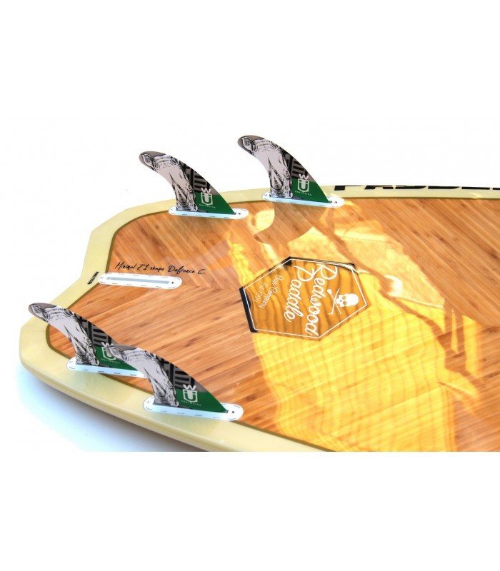 Tecnología Núcleo EPS HD 15 kg/m3, fibra vidrio tri-axe, doble sandwich Madera Natural/PVC en todo el deck, refuerzos en varias zonas como tail, punta y cantos. Ridigez Stinger PVC de punta a punta de la tabla para incrementar la rigidez (mas ligero que el habitual stinger de madera). Fiabilidad Refuerzos PVC 90 kg/m3 alrededor del mango, de las cajas de aletas para una solidez y fiabilidad máxima. Aletas 4 aletas Future Fins en fibra de vidrio y honeycomb para optimizar el flex y reducir el peso. Se puede montar en quad o trifins. Pad Deck pad con 2/3 con kicktail. Nueva densidad de espuma mas confortable y nueva superficie antideslizante para un mejor agarre. Bamboo El uso del bamboo ha sido también determinante para incrementar la rigidez y la resistencia a los golpes.