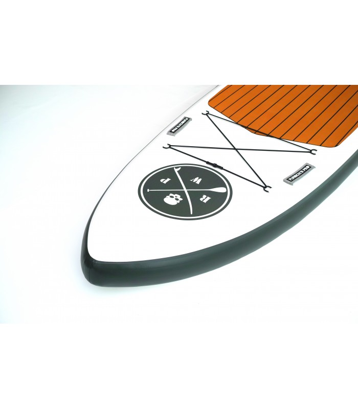 El uso de estos nuevoas materiales ha sido determinante para obtener la mejor relación ligereza/rigidez. Se trata de una construcción alta gama cuya rigidez y ligereza se nota enseguida en el agua pero también para transportar la tabla hasta la orilla. Una construcción que pueden encontrar en otras marcas pero por unos precios que no tienen nada que ver con los nuestros y pueden, a veces, superarlos de mas del doble.Ridigez Las dos capas de PVC y la construcción garantizan una tabla rígida y la restitución perfecta del rocker y shape de la tabla. Se pueden hinchar a mas de 20 psi. Fiabilidad Un cuidado especial en el momento del sellado de los materiales y un control de calidad rigoroso aseguran la fiabilidad de nuestras tablas y su durabilidad en el tiempo. Aletas Aleta central amovible con sistema internacional US Box y cuatro aletas lateras pegadas para incrementar el control y la estabilidad de la tabla (salvo el los modelos de race : solo una aleta central - Big Dady 3 aletas - Gama Starter una sola Aleta central con sistema slide). Pad Deck pad con 2/3. Nueva densidad de espuma mas confortable y nueva antideslizante para un mejor agarre. (Full deck pad en la Big Daddy) Mochila Mochila con ruedas para guardar la tabla con sus accesorios. Se puede llevarla en la espalda o colgada del hombro. El nuevo sistema de apertura con cremallera permite entrar la tabla y los accesorios con mucha facilidad. (Salvo gama Starter Mochila Tubo) Hinchador Destacar el nuevo inflador HP con manómetro de presión incorporado, doble sistema de inflado permitiendo inflar la tabla con doble velocidad y ponerle mas presión de aire. Accesorios Soporte elástico en la punta para sujetar por ejemplo una bolsa, una botella de agua, mascarillas de buceo.
