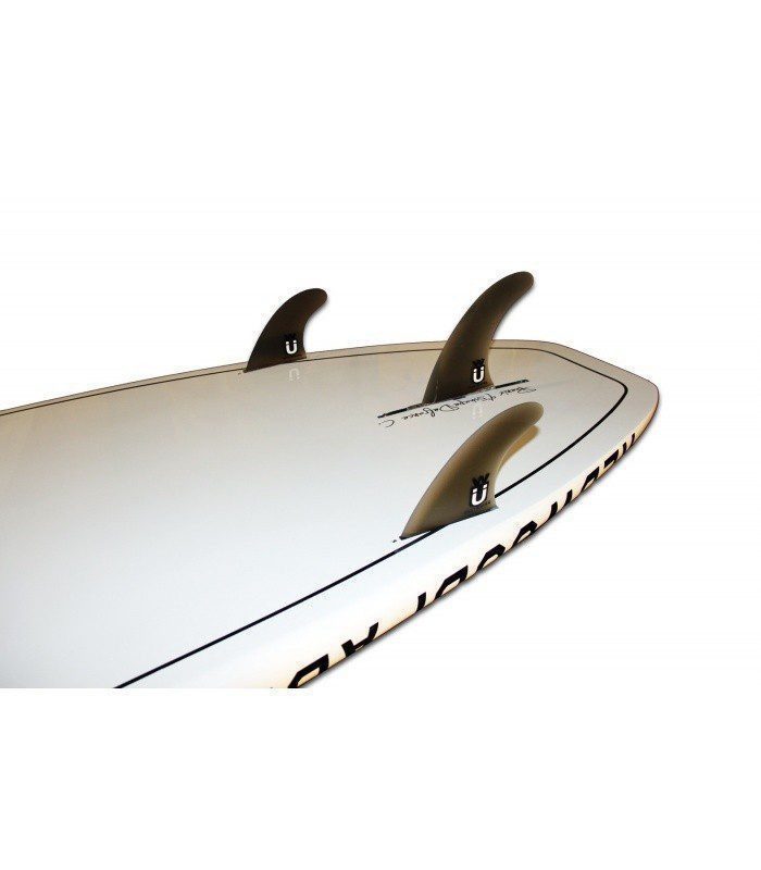 Hemos optado en esta tabla por una configuración de aleta enthruster (3 aletas) para una mayor variedad de opciones en función del uso de la tabla o del estado del mar. Se puede utilizar con tan solo la aleta central para favorecer la velocidad en paseo o con 3 aletas para incrementar la estabilidad, el agarre y el control en las surfeadas.