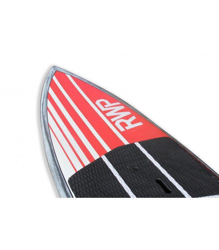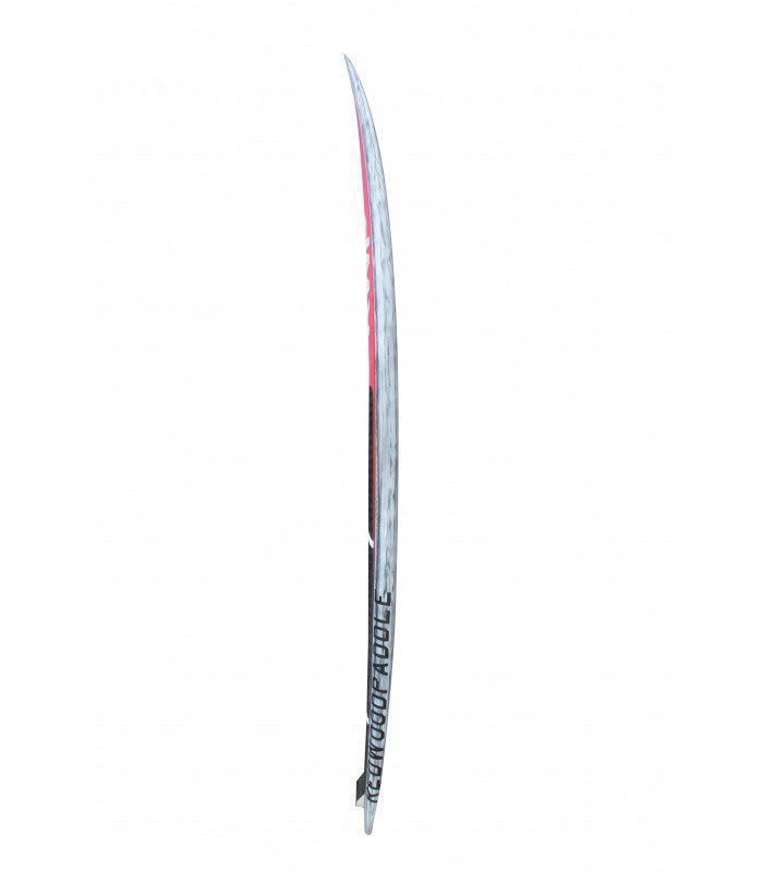 Tecnología 100% carbono, núcleo EPS HD 15 kg/m3, fibra vidrio tri-axe, sandwich PVC en todo el deck, refuerzos en varias zonas como tail, punta y cantos. Ridigez Stinger PVC de punta a punta de la tabla para incrementar la rigidez (mas ligero que el habitual stinger de madera). Fiabilidad Refuerzos PVC 90 kg/m3 alrededor del mango, de las cajas de aletas para una solidez y fiabilidad máxima. Aletas Central US box en fibra de vidrio y 2 aletas Future Fins en los laterales con fibra de vidrio y honeycomb para optimizar el flex y reducir el peso. Pad Deck pad con 2/3 con kicktail. Nueva densidad de espuma mas confortable y nueva superficie antideslizante para un mejor agarre.